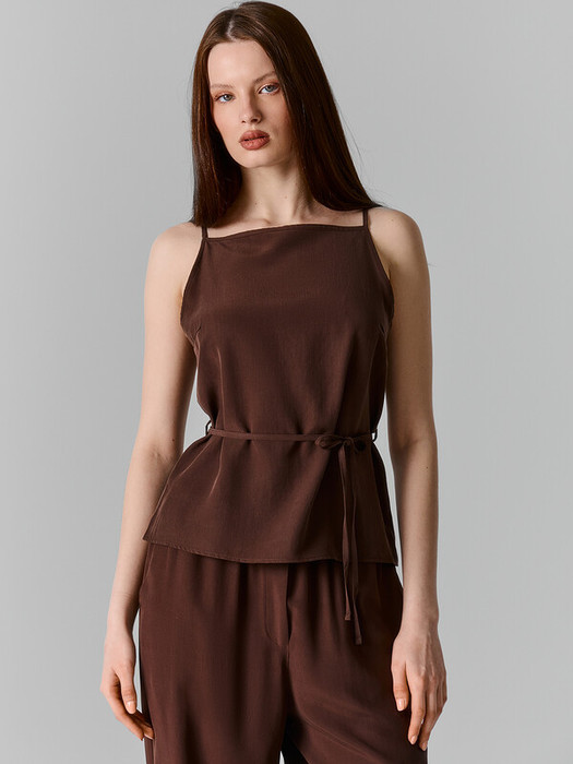 Блуза женская прямого силуэта на тонких бретелях. На детали переда застрочены вытачки. В районе талии по боковым швам вставлены петли под пояс из основного полотна. Нижний срез блузы обработан швом вподгибку.