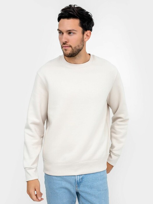 Джемпер из трикотажного футера с теплым подчесом. Длина до середины бедер, силуэт прямой. Линия плеча спущена. Рукава длинные, с притачными манжетами. Горловина круглой формы. Отличный выриант для стильных городских образов!