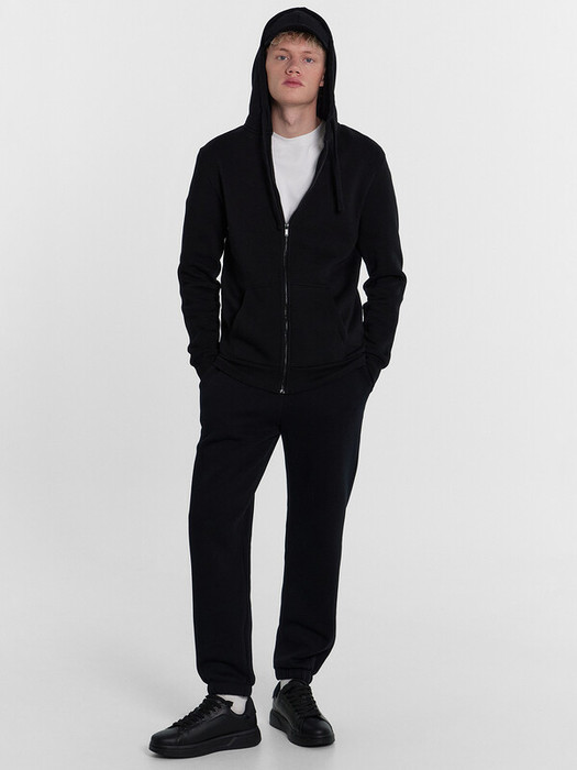 Джогеры прямые, зауженные к низу. Пояс отрезной с эластичной тесьмой внутри. С внутренней стороны пояса пробиты петли и втянут шнур с эглетами (8EКXWCp-1). В боковых швах обработаны карманы - хулиганы, подкладка карман из кулирки. На задней правой половинке накладной карман, по заданию. Нижние срезы брюк обработаны швом вподгибку с эластичной тесьмой внутри.
