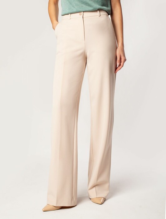 Брюки прямого кроя с – универсальный предмет весеннего гардероба. Высокая посадка и стрелки зрительно увеличивают рост и визуально стройнят. Ткань брюк: поливискоза с эластаном, гарантирует непревзайденный комфорт и формоустойчивость, хорошо тянется и не мнется. В таких брюках будет комфортно даже летом, благодаря наличию вискозы в ткани. Тело будет всегда дышать. Классическая длина отлично сочетается с обувью в любом стиле и подходит всем типам фигуры.