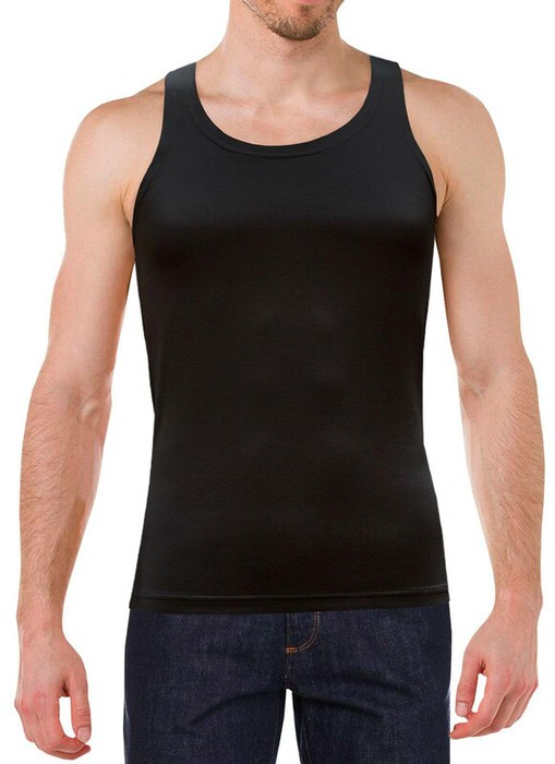 Майка мужская с зауженными шлейками, с овальным глубоким вырезом горловины. Прямой силуэт, стандартной длины - классическая модель.