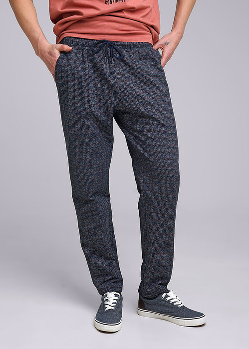 Прямые мужские зауженные брюки из трикотажного полотна футер в клетку, с регулируемой талией на резинке и шнуром. Функциональности модели придают боковые карманы. Идеально подойдут для повседневного пользования в режиме большого города.