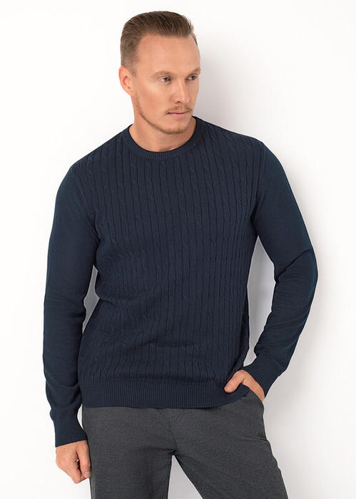 Джемпер мужской из смесовой хлопковой пряжи с длинным рукавом и груглой горловиной. Изделие дополнено вязкой с классическим узором ""косы"". Прекрасно сохраняет тепло, отличное решение на холодное время года. Комбинируется с джинсами или брюками.