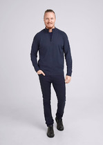 Джемпер мужской из смесовой хлопковой пряжи с длинным рукавом и воротником стойкой. Прекрасно сохраняет тепло, комфортный в носке, отличное решение на прохладное время года. Комбинируется с джинсами или брюками.