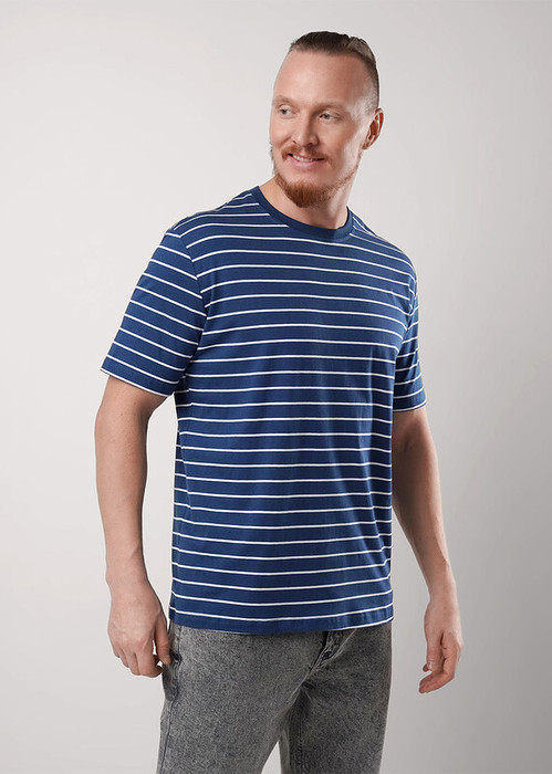 Мужская футболка увеличенного объема из дышащего хлопкового полотна с круглой горловиной и коротким рукавом. Яркость данной модели добавляет набивка в полоску и имиджевая фурнитура. Отличное дополнение к джинсам.