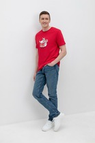 Футболка свободного кроя с круглым вырезом горловины и коротким рукавом. Модель выполнена из хлопкового трикотажного полотна и дополнена фото-принтом. В данной футболке можно отправиться на работу или прогулку с друзьями.