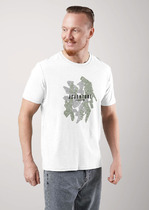 Базовая однотонная футболка стандартного объема с V вырезом горловины, втачным рукавом из хлопкового полотна с добавлением эластана. Является неотъемлемой частью мужского гардероба.