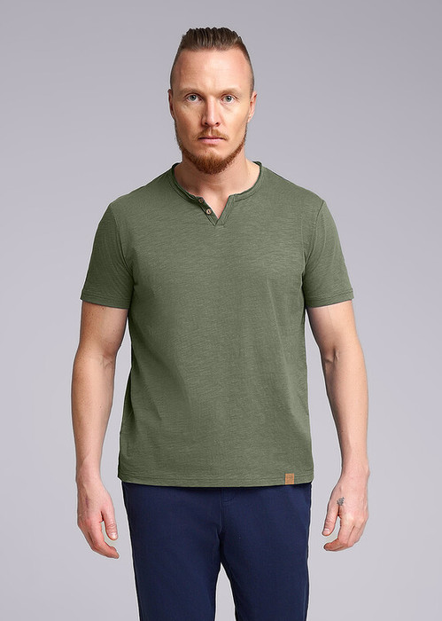 Футболка мужская с округлой горловиной и планкой, коротким втачным рукавом. Данная модель прекрасно комбинируется с джинсами или шортами. Отличное решение на лето, для прогулок с друзьями или поездки на отдых.