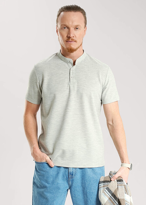 Футболка-поло с воротником-стойка и функциональной планкой на пуговицах, из смесового полотна. Составит отличный комплект с брюками для школы и офиса.