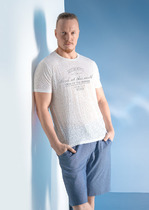 Футболка мужская с круглым вырезом горловины и коротким втачным рукавом из фактурного полотна пике. Изделие дополняет имиджевым принтом. Подойдет к любым брюкам или джинсам.