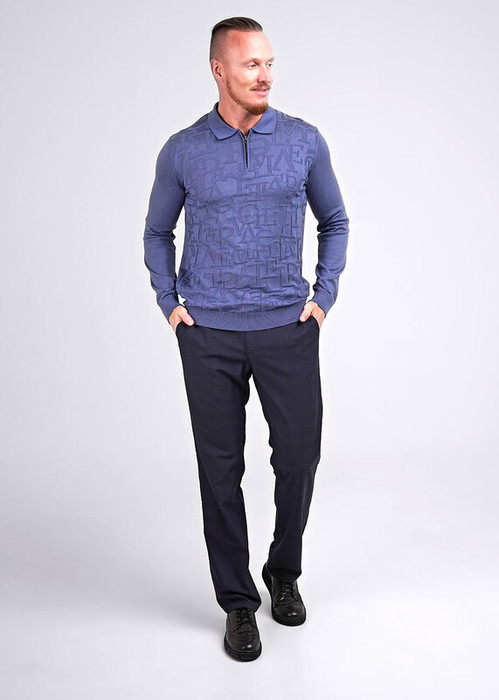 Мужское вязаное поло на молнии с длинным рукавом. Модель связана из приятной хлопковой пряжи с добавлением акрила с вывязанным графическим узором по переду. Изделие можно сочетать как в классическом стиле, так и в повседневном.