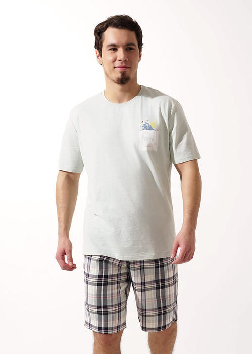 Шорты мужские из клетчатого поплина на широком поясе с резинкой и регулируемым шнуром, по бокам удобные карманы. Отлично решение для создания стильного образа.