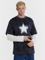 Нижние срезы футболки и рукавов обработаны швом в подгибку на