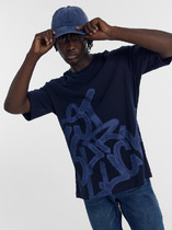 Футболка свободного силуэта. Перед и спинка цельнокроеные.Горловина круглой