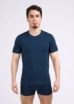 Нижние срезы футболки и рукавов обработаны швом вподгибку.