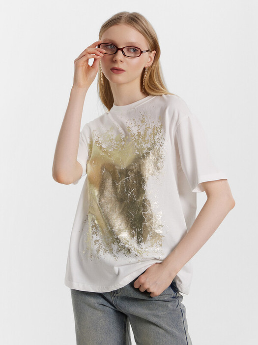 Хлопковая футболка свободного силуэта из трикотажной кулирки. Вырез круглой формы. Свободу движений гарантируют спущенная линия плеча и углубленная пройма. Рукава широкие, чуть выше локтя. Стильная модель!