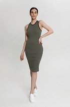 Платье женское полуприлегающего силуэта из ткани.