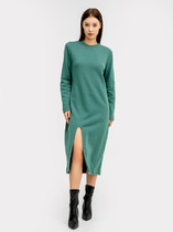Рукав втачной, узкий, длинный. Низ рукава и платья обработаны на микрооверлоке.