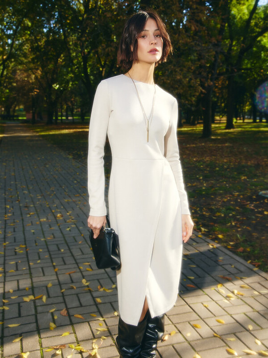 Ищете идеальный базовый наряд для холодного времени года? Представляем вам женское миди-платье с вырезом "лодочка" и длинными рукавами. Перед модели украшен глубоким разрезом и имеет элегантный запах. На спинке потайная застежка-молния. Изготовленное из мягкого материала интерлок с добавлением вискозы, это платье обеспечит вам комфорт даже в прохладную погоду. Длина миди добавляет образу изысканности, а универсальный дизайн позволяет легко комбинировать платье с различными аксессуарами и обувью. Эта модель станет отличным выбором для самых разных мероприятий: будь то прогулка по городу, встреча с друзьями или романтический ужин. Оно поможет вам создать как casual, так и более строгий образ.