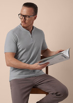 Джемпер мужской «поло» прилегающего силуэта из трикотажного полотна пике. Горловина круглой формы со стояче-отложным воротником из довяза. Центральная застежка планка на пуговицы. Шов горловины спинки обработан хб тесьмой. Рукав втачной, короткий. В боковых швах обработаны разрезы.