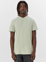 Перед с застежкой "поло". Верхняя планка цельнокроеная. Застежка на 2 петли и пуговицы.