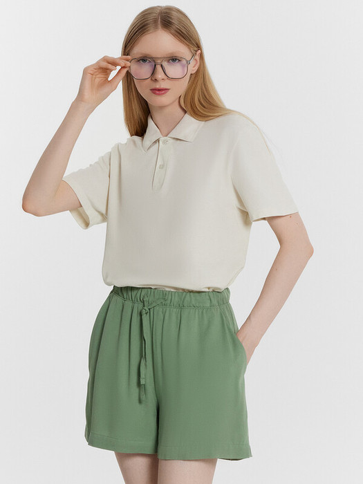 Шорты женские свободного силуэта из ткани. На детали переда карманы с отрезным бочком.