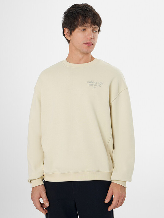 Свитшот изготовлен из хлопка и полиэстера. Хлопок обеспечивает натуральность и воздухопроницаемость, а полиэстер добавляет прочность и устойчивость к деформации. Универсальный  цвет и лаконичный дизайн делают свитшот подходящим для сочетания с джинсами, брюками или шортами.