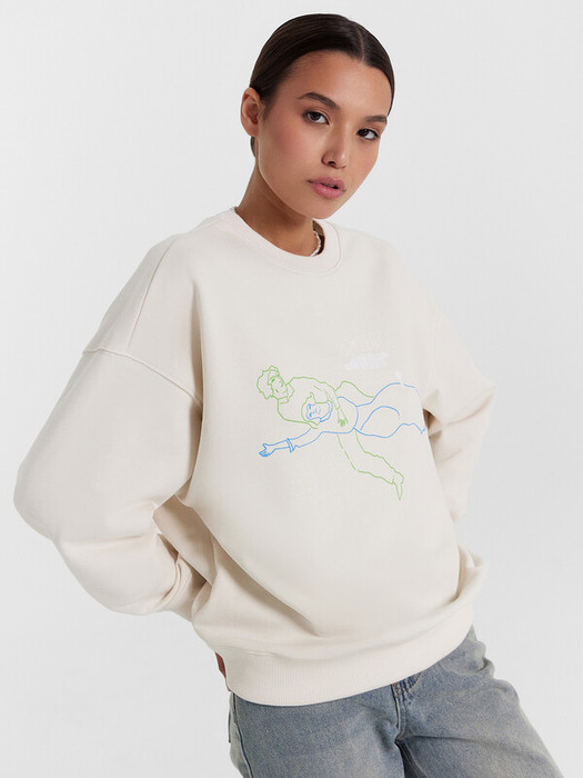 Джемпер (свитшот) oversize, перед и спинка цельнокроенные,  длиной до линии бедер.