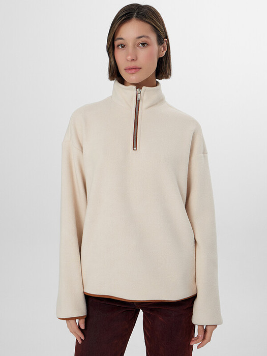 Представляем невероятно мягкую и нежную толстовку, которая станет отличным дополнением вашего гардероба. Модель свободного силуэта с круглой горловиной и воротником-стойкой обеспечивает максимальный комфорт. Центральная застежка на молнию и длинные рукава со спущенной линией плеча делают эту толстовку удобной и практичной. А боковые карманы с подкладкой из кулирки добавляют удобство и функциональность. Изделие выполнено из флиса - мягкого, теплого и дышащего материала, который быстро сохнет и прекрасно сохраняет тепло. Флис также является легким и долговечным, обеспечивая уют и комфорт в любую погоду.