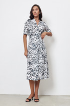 09.04 Vilatte Платье свободное с V-вырезом из 100% хлопка с поясом и разрезом D