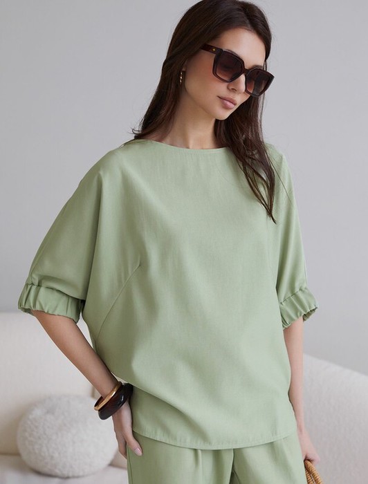 27.03 Vilatte Свободная блузка с вырезом лодочка из плотного лиоцелла D29.359 з