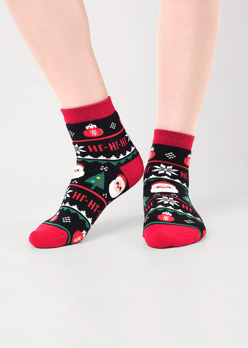 теплые плюшевые новогодние детские носки со скандинавским орнаментом и дед морозом