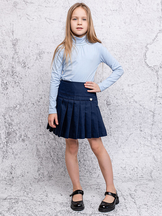 Водолазка (джемпер) для девочки с длинным рукавом в голубой расцветке из ткани супрем пенье повышенного граммажа. Эластичная ткань. Подойдет для носки в любое время году в школу.Характеристики:Ткань: Супрем пенье (повышенный граммаж) 92% хлопок 8% лайкраПроизводитель: batik