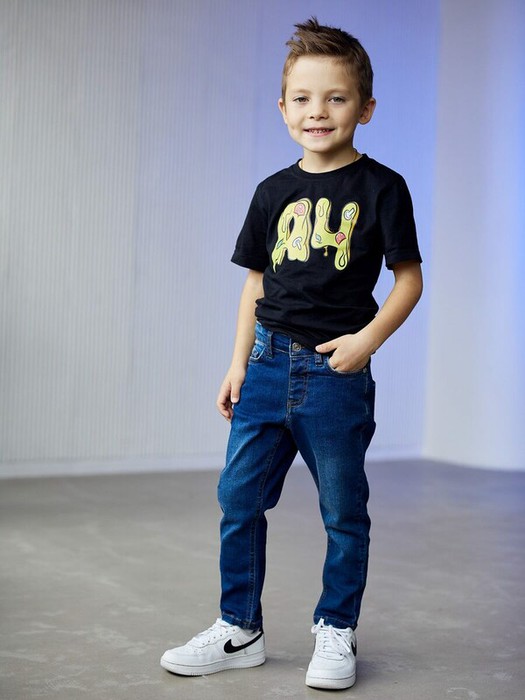 Базовые прямые джинсы синего цвета со средней посадкой. Деним из натурального хлопка с добавлением эластана для максимального комфорта. Классическая модель подойдет как девочкам, так и мальчикам. Брюки будут гармонично смотреться с объемным верхом кроя оверсайз.Особенности:Два прорезных кармана спереди и кармашек для мелочиДва накладных кармана сзадиЗастежка на пуговицу и молниюПояс с резинкой для регулировки обьемаШлевки для ремня