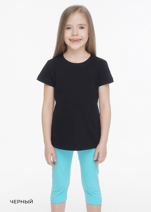 Базовая футболка для девочки из хлопка малого объема с коротким рукавом. Горловина круглая с окантовкой.