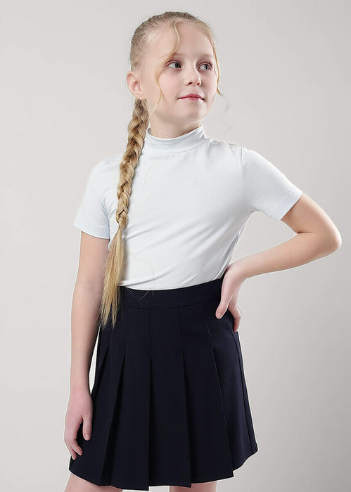 Базовый джемпер со стойкой и коротким рукавом станет отличным дополнением к вашему гардеробу! Модель выполнена из хлопкового полотна с добавлением эластана. Джемпер отлично подойдет для создания классных повседневных и школьных образов