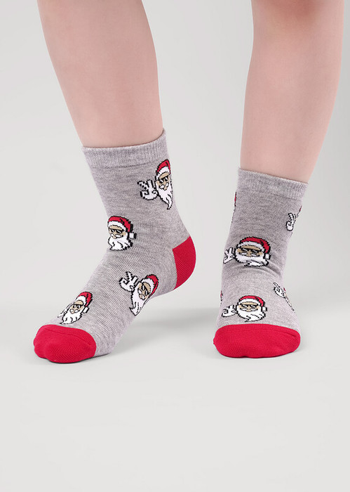 носки детские для мальчика с выделенным мыском и пяткой с рисунком лица деда мороза