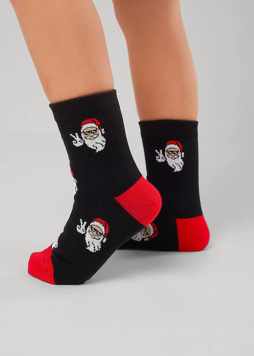 носки детские для мальчика с выделенным мыском и пяткой с рисунком лица деда мороза