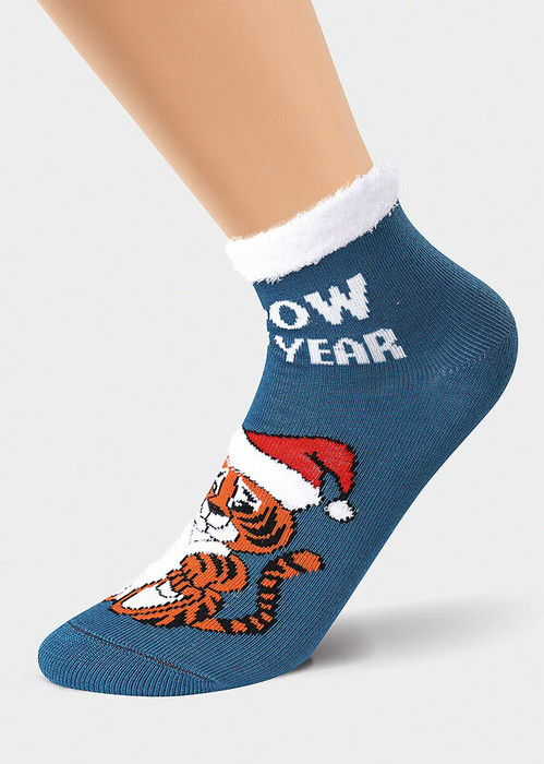 стильные новогодние носки с оригинальным жаккардовым рисунком Тигренок-символ года, элементы рисунка вывязаны- мелкой ""травкой""