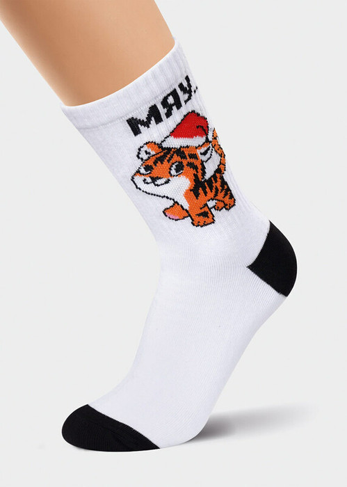 молодежные новогодние носки с тигренком- символ года, и надписью МЯУ