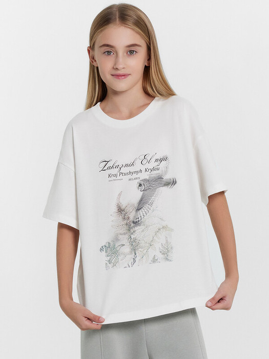 Футболка из трикотажного полотна кулирного переплетения. Силуэт свободный, длина до середины бедра. Рукава короткие, горловина круглая. Крупный стильный принт на передней части наверняка понравится вашей моднице!