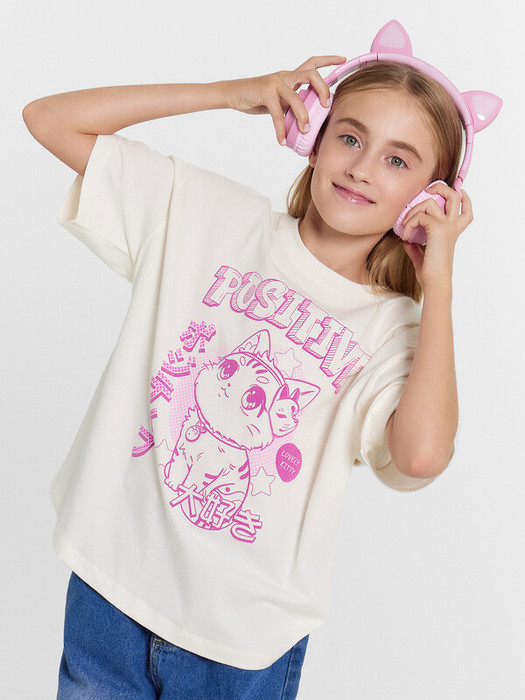 Футболка из трикотажного полотна кулирного переплетения. Силуэт свободный, длина до середины бедра. Рукава короткие, горловина круглая. Дизайн футболки наверняка понравится вашей моднице!
