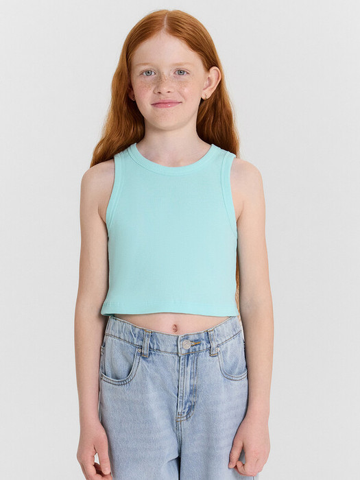Топ для девочек прилегающего силуэта. Горловина круглая. Проймы и горловина окантованы бейкой из основного полотна. Низ изделия обработан швом в подгибку.
