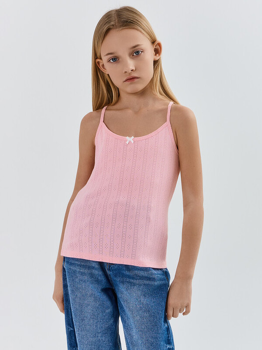 Топ прилигающего силуэта длиной чуть выше середины бедер. Верхний край спинки, бретели, срезы пройм окантовы бейкой. Перед и спинка цельнокроеные. Низ застрочен на 2-хигольной плоскошовной машине швом вподгибку с открытм срезом