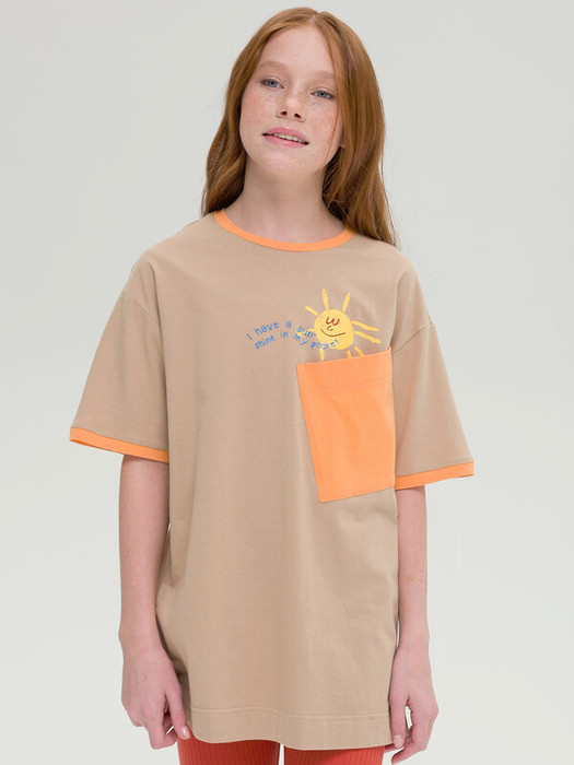 Футболка оверсайз для девочки. 100% хлопок в составе – ткань мягкая, дышащая, приятная на ощупь. Контрастная обработка по горловине – гармоничное сочетание с принтом спереди. Объемный карман с косым входом – оригинальная асимметрия в дизайне. Удобен и надежен для важных и чувствительных мелочей. Комбинируется с джоггерами, велосипедками. Подходит для повседневного стиля и активного образа жизни.