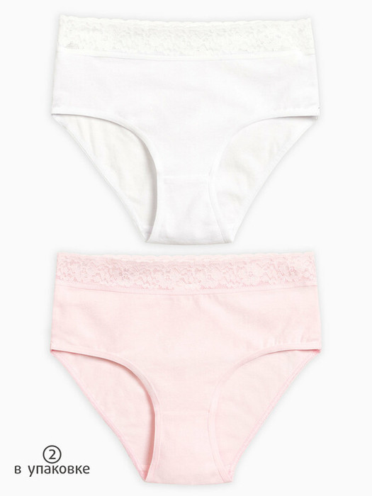 Трусы слипы с высокой посадкой для девочки. Комплект из 2-х штук. Приятная на ощупь ткань с высоким содержанием хлопка и небольшим содержанием эластана – трусы сохраняют форму даже после частых стирок. Широкая резинка из мягкого эластичного кружева не передавливает тело и не натирает кожу. Лаконичный декор в виде атласного бантика - тактильно приятная изюминка. Для романтичных девочек.