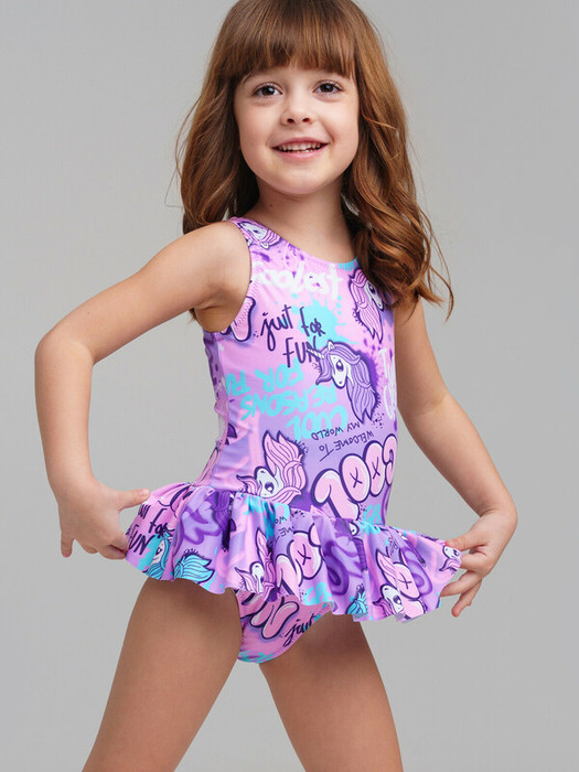 Купальник слитный детский для девочки. Купальник для пляжа и бассейна выполнен из быстросохнущего материала. Благодаря хлор-защите и UF-защите ткань сохраняет первоначальный вид даже при длительном пребывании на солнце.