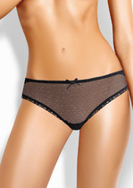 Бикини из кружевного полотна. Модель удобной посадки. По ножкам и талии обработаны резинкой с фестоном. Спереди расположен небольшой атласный бант.