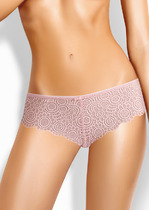 Трусы бразилиано женские из эластичного кружева. Ластовица из хлопка. Обработка краев по талии - ажурная резинка с фестоном. Спереди бант.