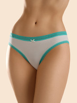 Трусы бразилиана из хлопкового полотна с эластаном. Сбоку вставки из узкой эластичной тесьмой. По ножке край окантован резинкой, а по талии жаккардовая резинка.